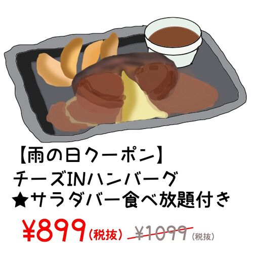 チーズINハンバーグ、アプリを使うと899円!健康サラダバーは食べ放題で、野菜も多く取れるぞ! カレーライスも食べ放題だぞ! フォカッチャ(プレーン・チーズ・バジル)も食べ放題だぞ! ソースは、 ソースバーから好きなものを取ろう!何種類もあって、ど…